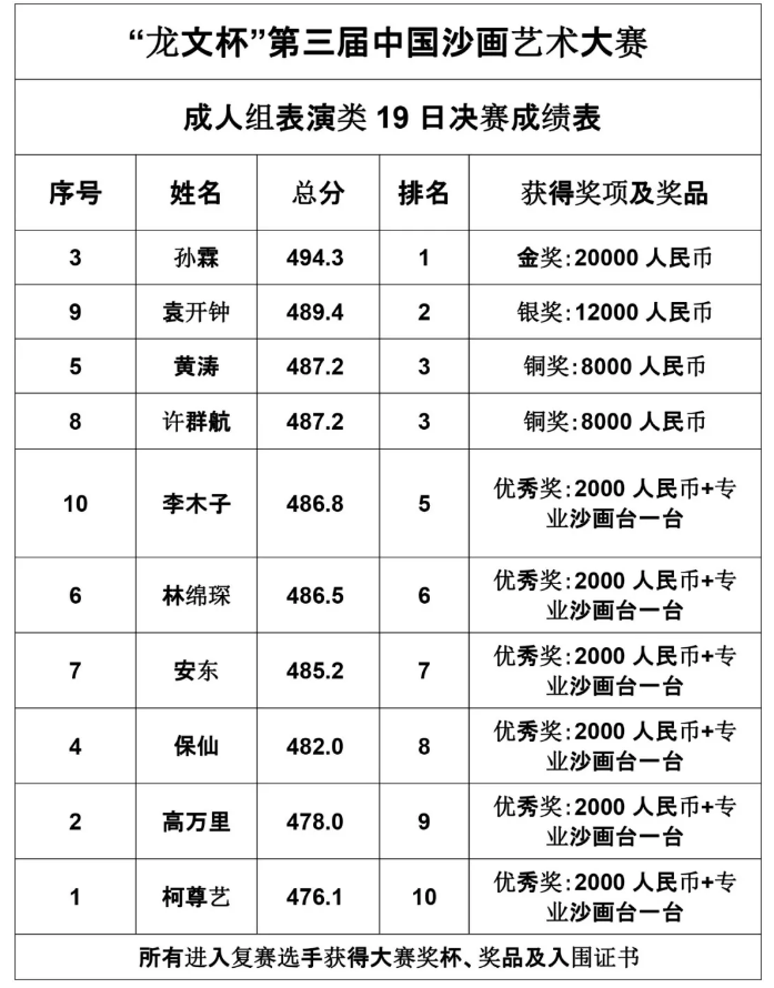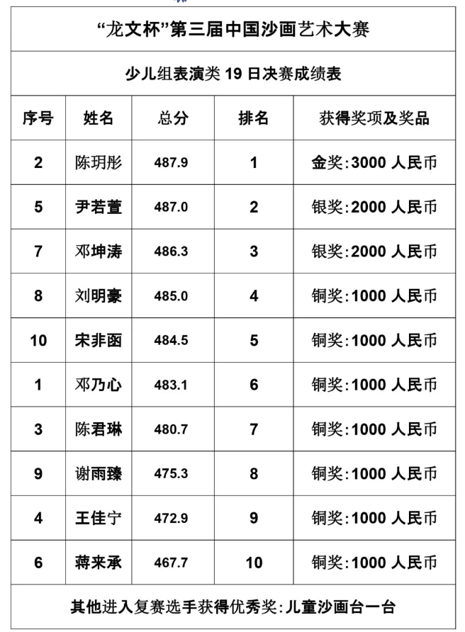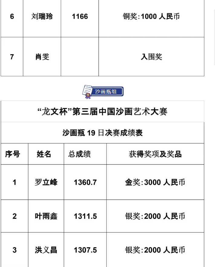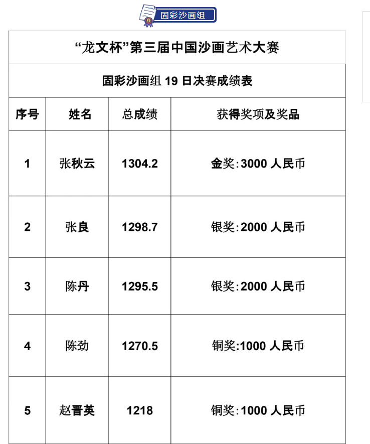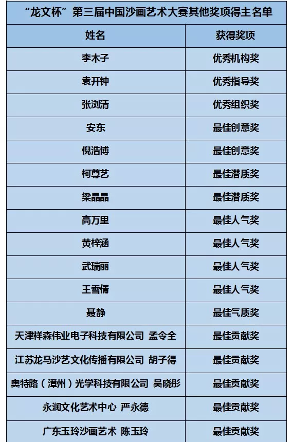 “龙文杯”第三届中国沙画艺术大赛获奖名单